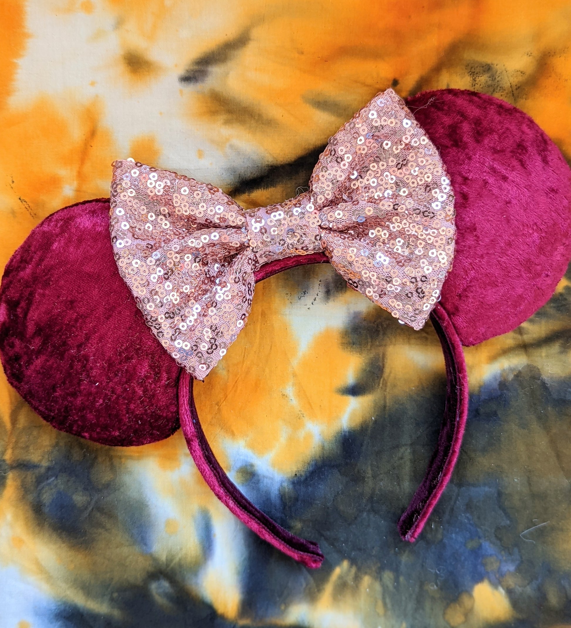 Please leave a note at checkout with your choice of velvet colour and sequin colour. Luxury velvet moise ears in autumnal colours. Handmade in Scotland with love, care and a little pixie dust. These ears are padded on both sides with a sturdy foam board interior. The headband is standard size and should fit adults and children (but most likely not suitable for toddlers)