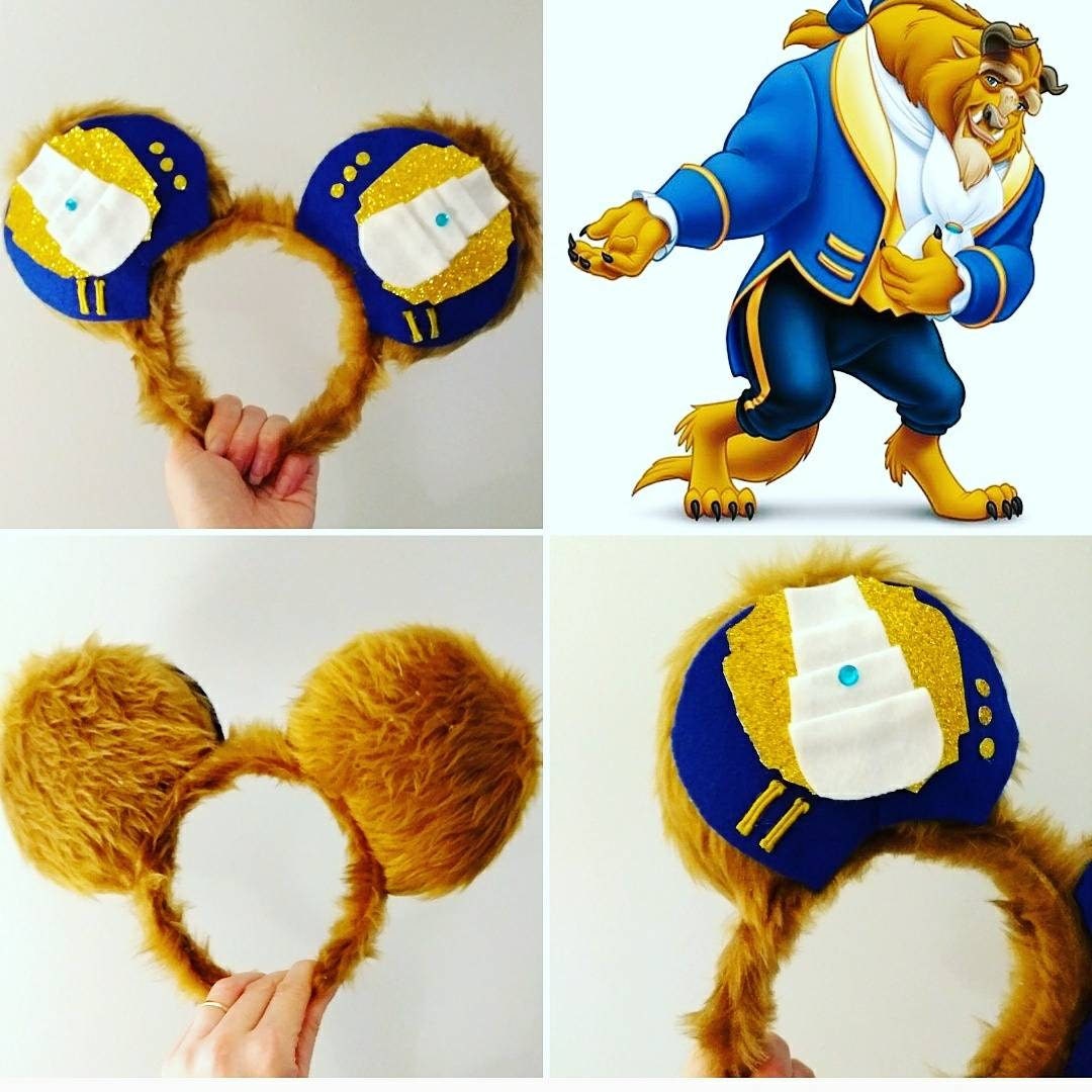 Beast inspired mouse ears!. Faux fur fabric, embellished in the style of Beast's outfit. I can also add a royal blue sequin bow. Perfect for Be Our Guest restaurant! These custom ears are made by me in Scotland with love, care and a little pixie dust. They are plush on both sides with a sturdy foam board interior. The headband is standard size, but flexible and should fit adults and children (but most likely not suitable for toddlers) I love making custom orders! Please feel free to contact me if you'd like something a little different.