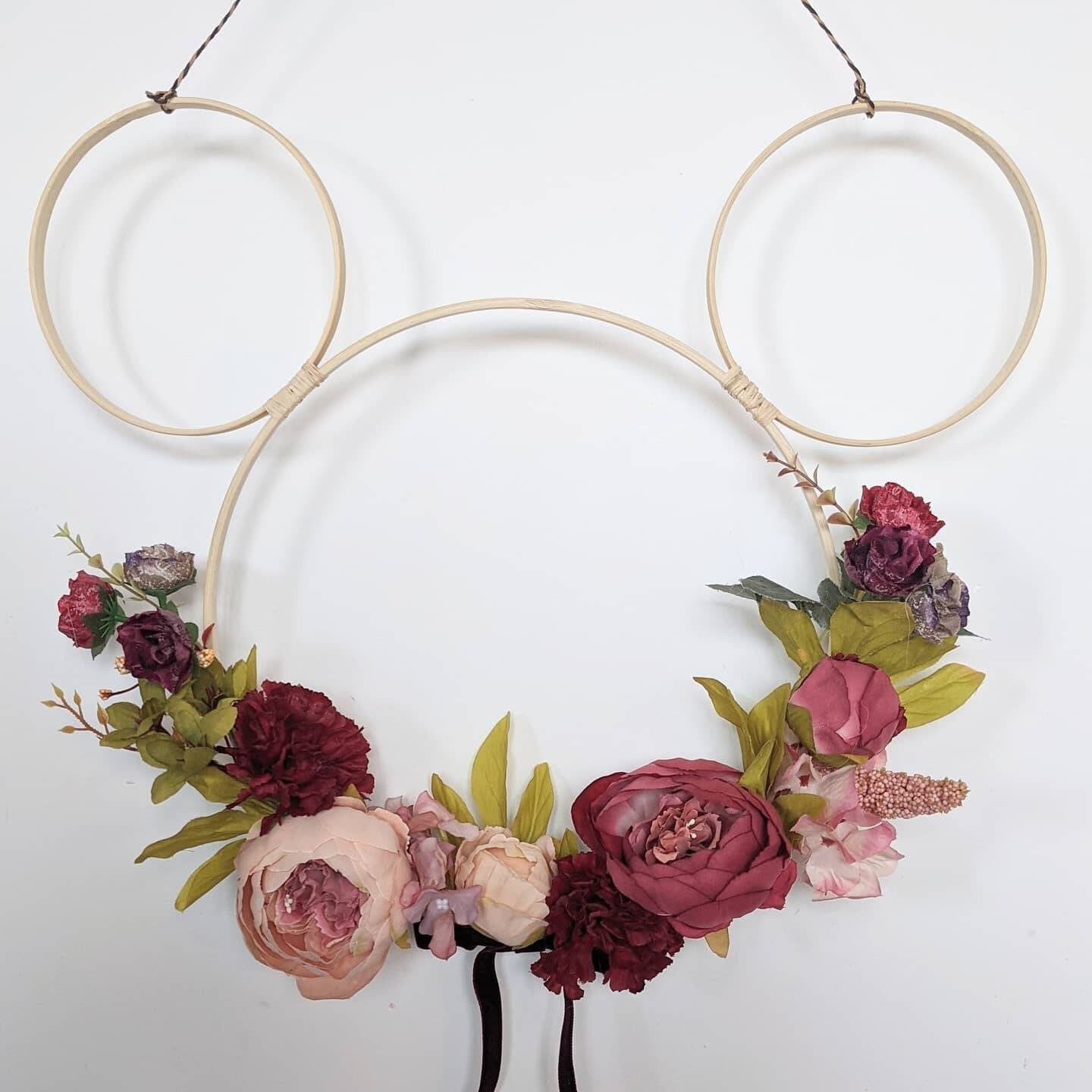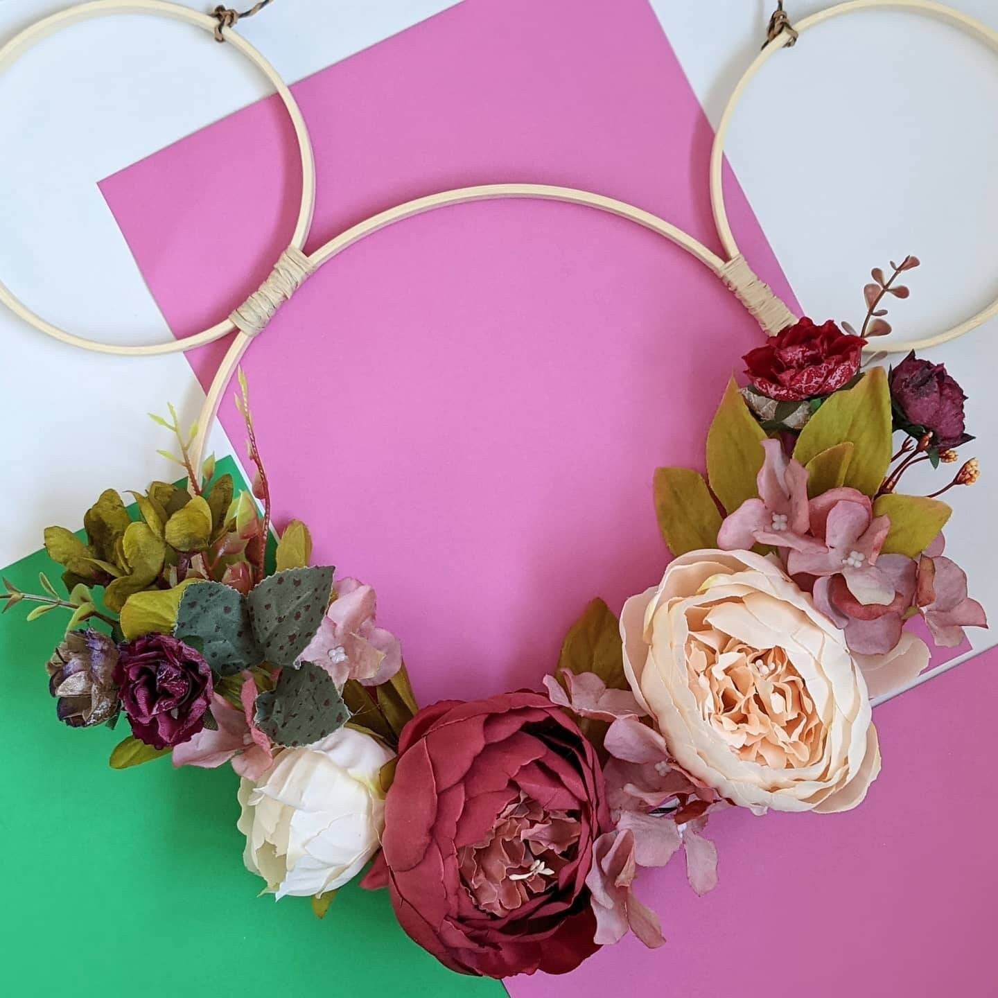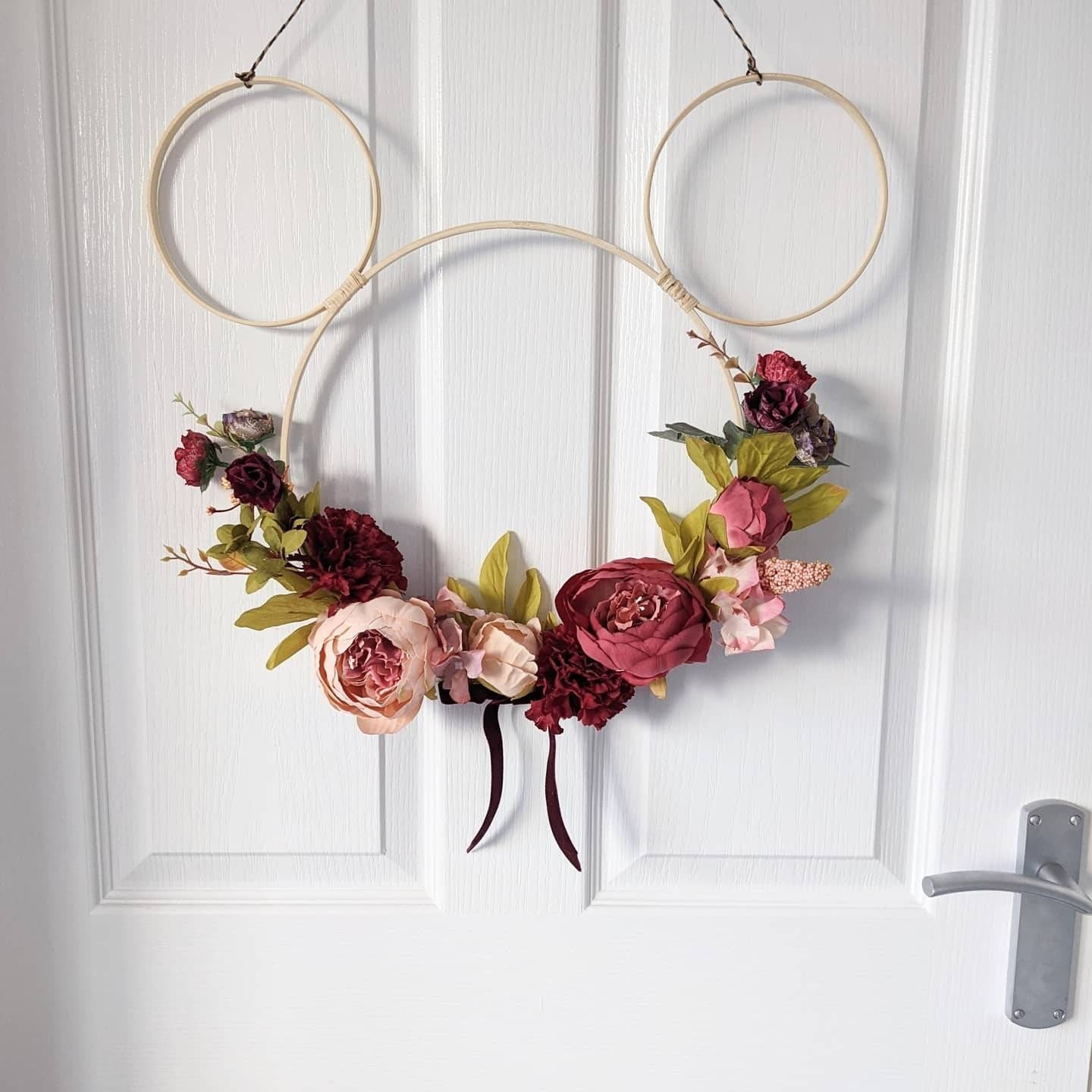 Inspired by one of my favourite characters - sleeping beauty! This Indoor hoop wreath/wall hanging is made with beautiful artificial flowers (picture is for illustrative purposes and flower placement will be similar but not exactly the same). Perfect for adding a touch of magic to any room in your home. Various sizes available. Message me to discuss custom options.