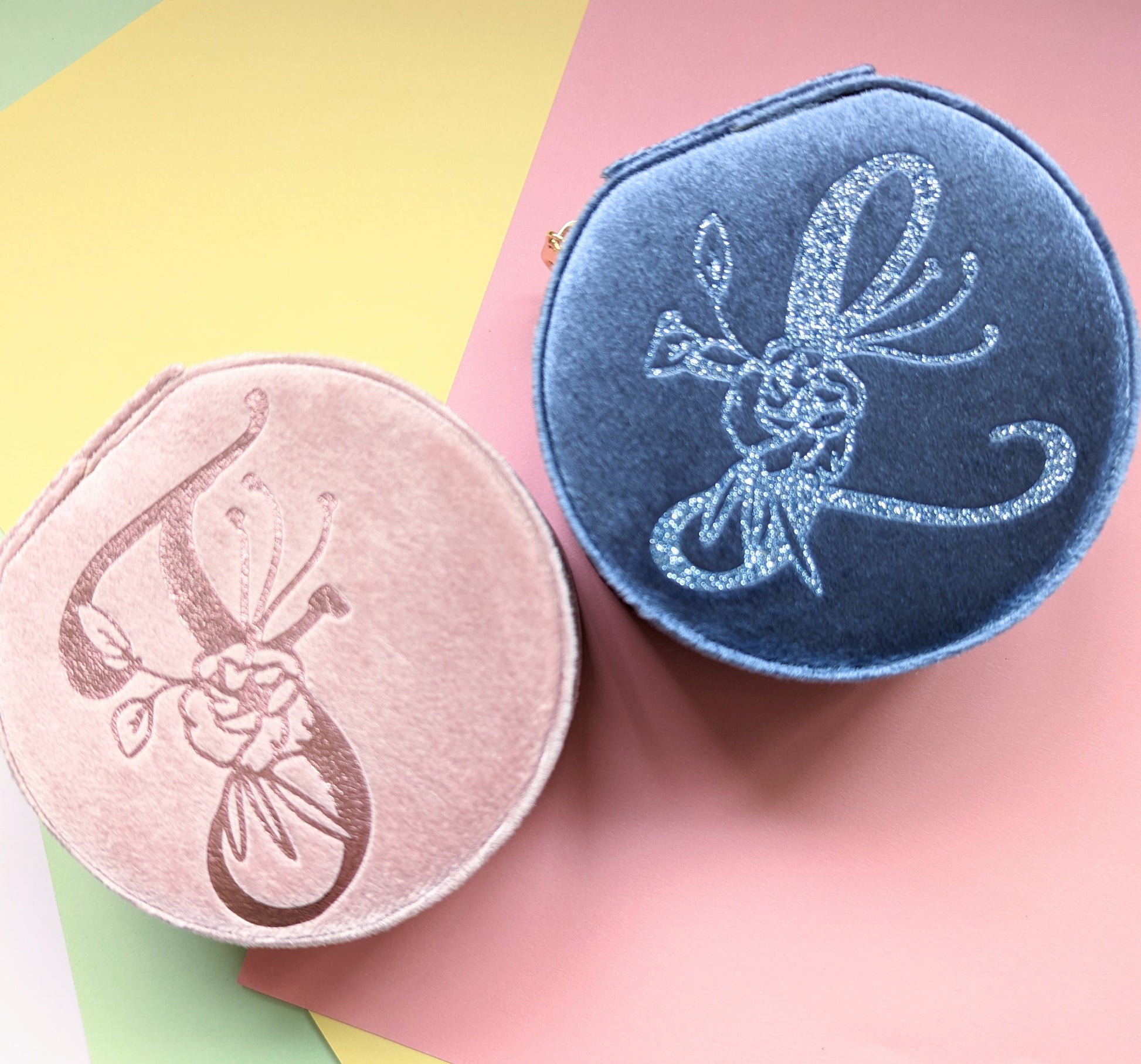 Made from beautifully soft velvet with gold hardware and personalised with a choice of designs and colours.