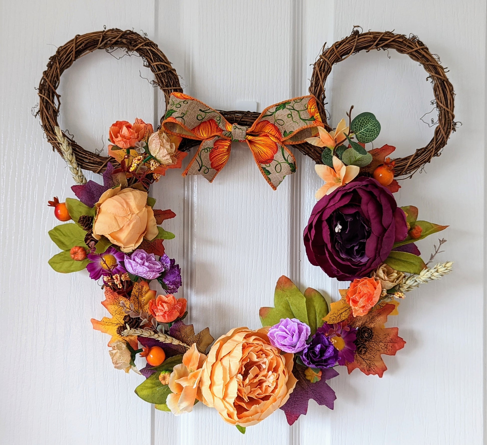 Add a touch of magic to your home with one of my custom Mickey shaped grapevine wreaths. These wreaths are made with beautiful artificial flowers and embellishments (photos are for illustrative purposes - we'll work on a design especially for you!). Let's chat! - Let me know what colours you'd like and if you have any favourite flowers (or flower you hate!) and I'll create something beautiful.