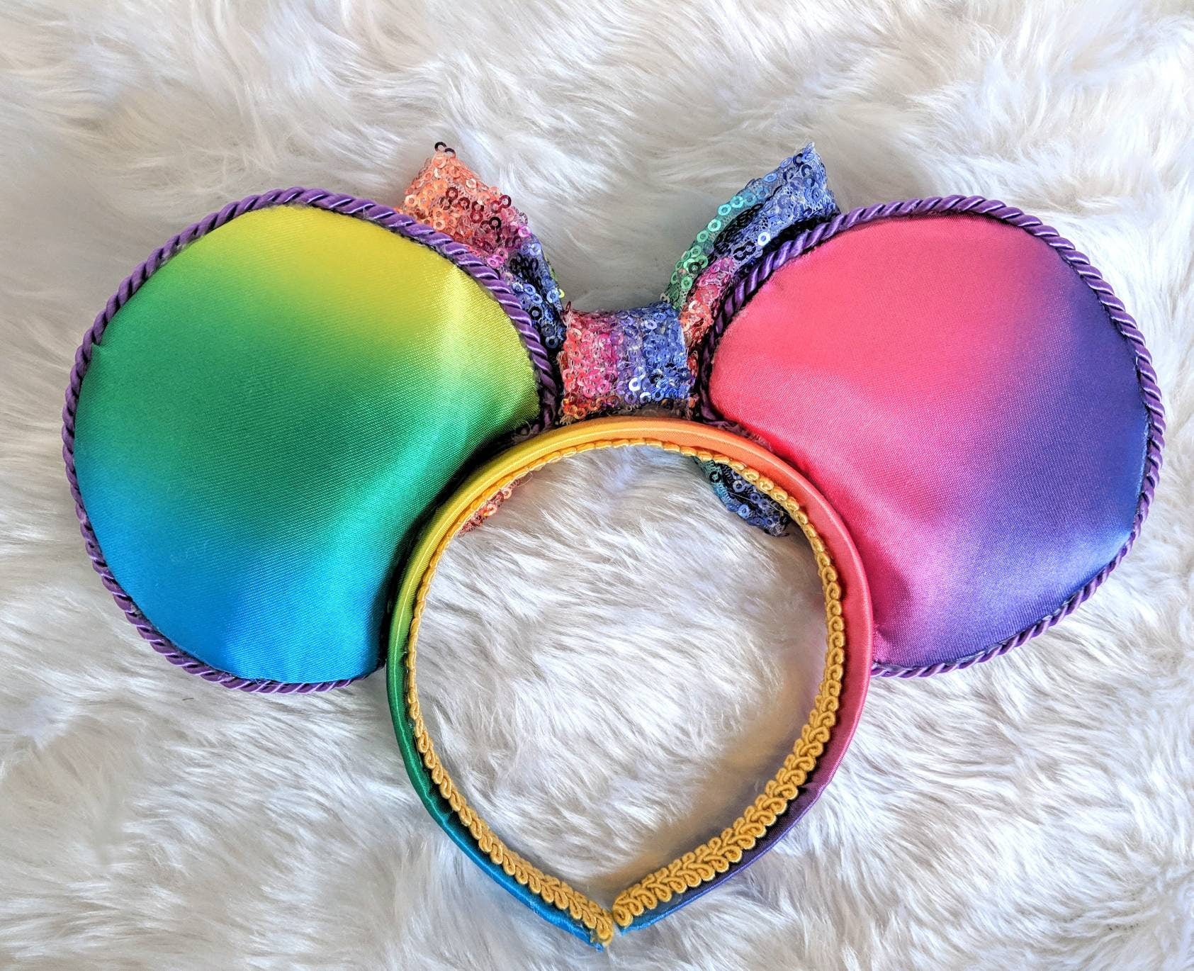 I have a variety of bows available so please send me a message if there's a particular colour you would like. They are handmade in Scotland with love, care and a little pixie dust. The ears are padded on both sides with a foam board interior to make them nice and sturdy. The headband is covered with matching fabric and is very comfortable. Headbands are a standard size but flexible and should fit adults and children, but most likely not suitable for toddlers. All ears are custom made to order.