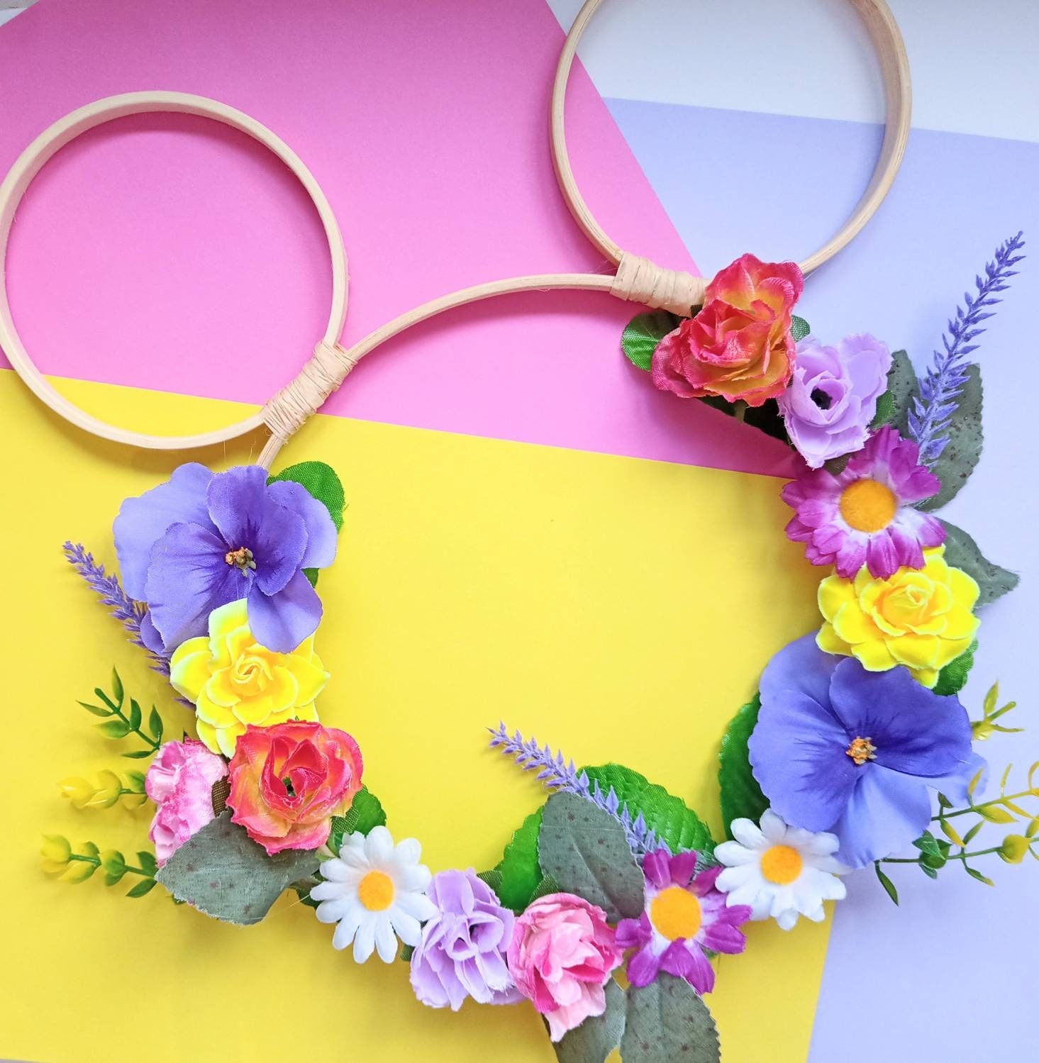 Add a little colour and magic to your home with one of my Mickey shaped indoor wall hangings. This particular design is Inspired by our favourite lost princess. These are handmade by me with beautiful artificial flowers (picture is for illustrative purposes and flower placement will be similar but not exactly the same). Various sizes are available. Feel free to message me to discuss custom options.