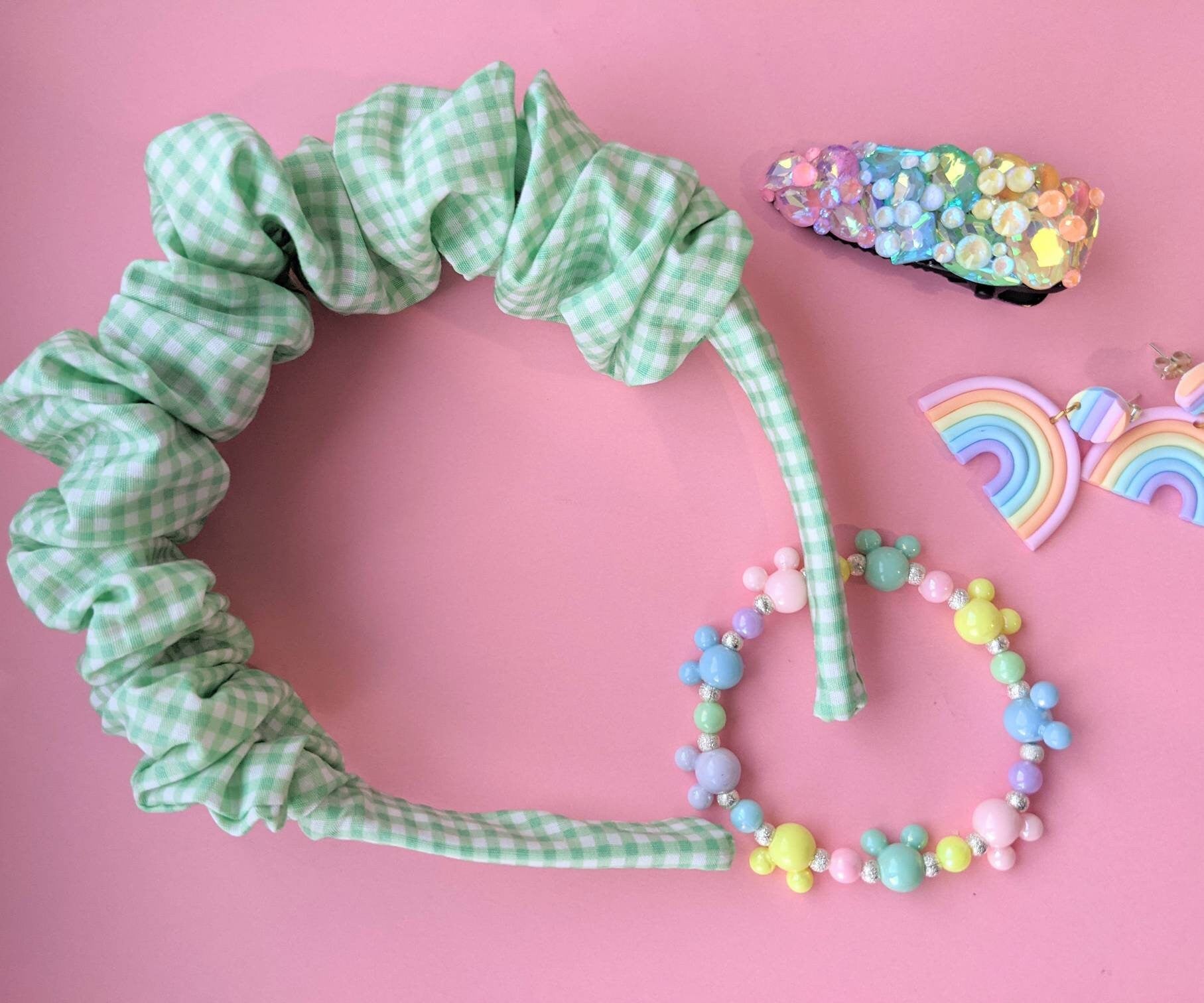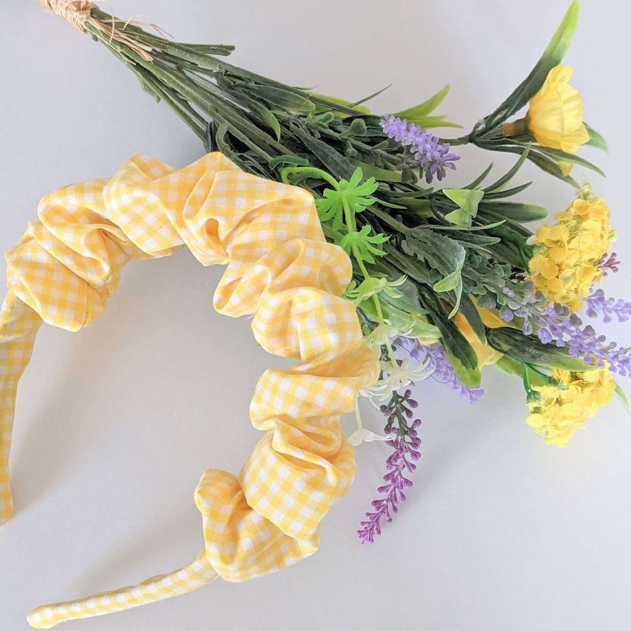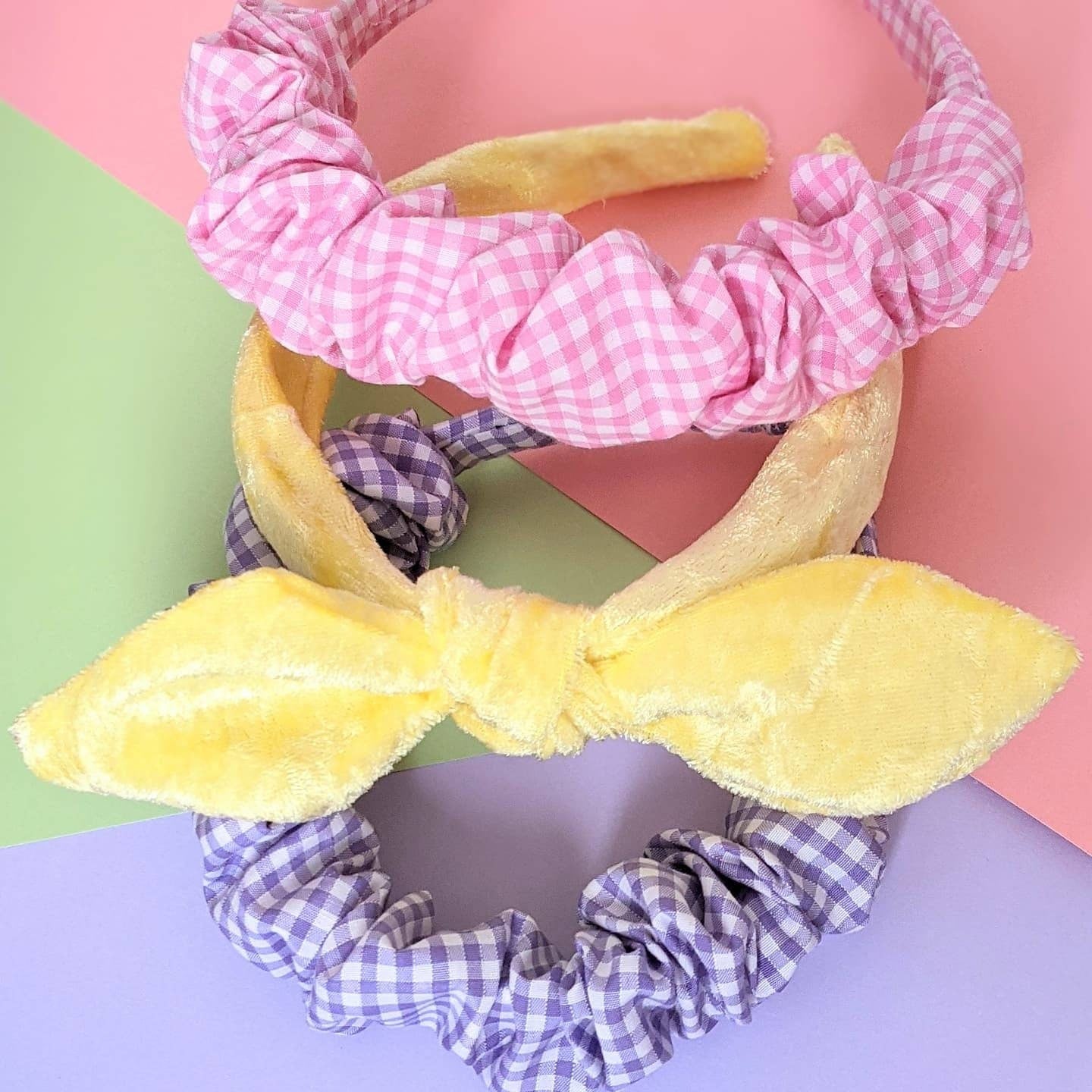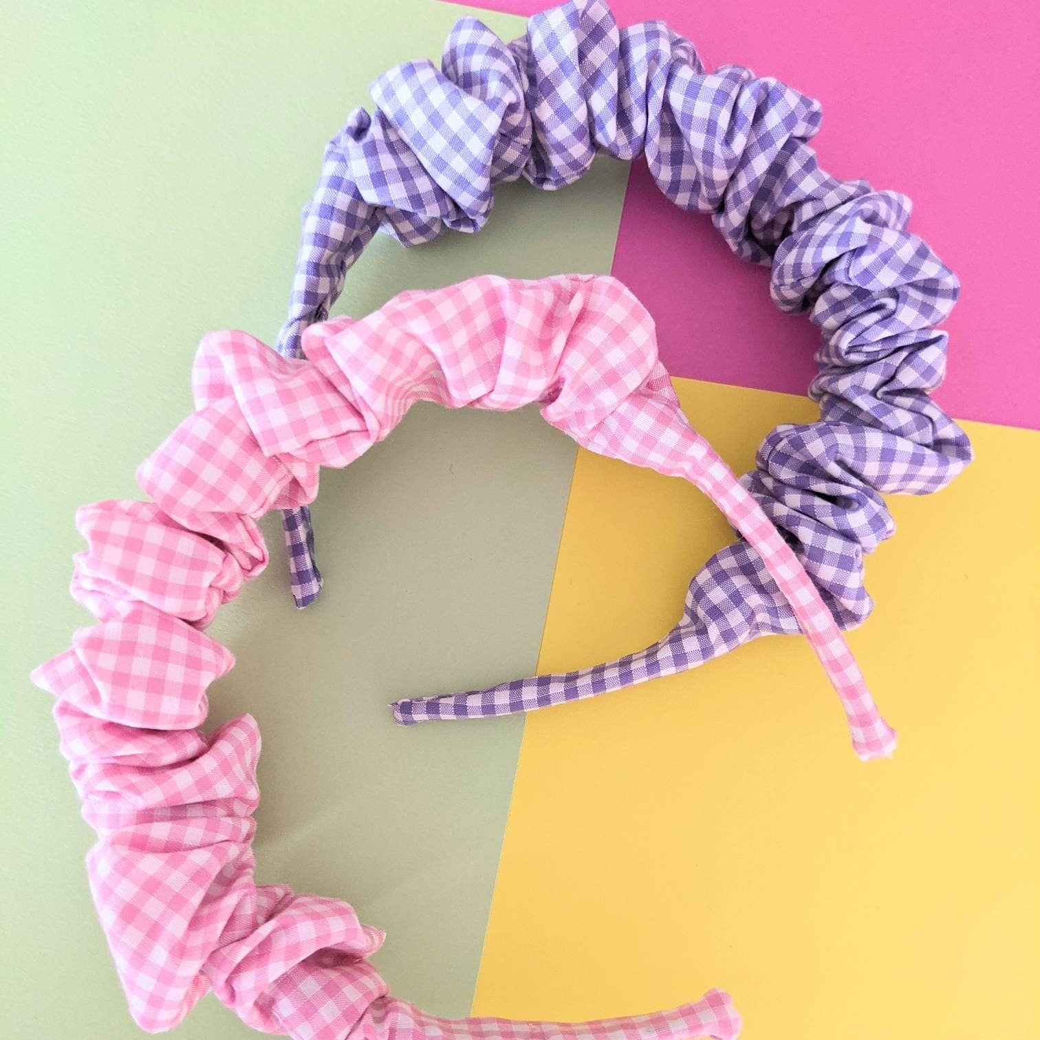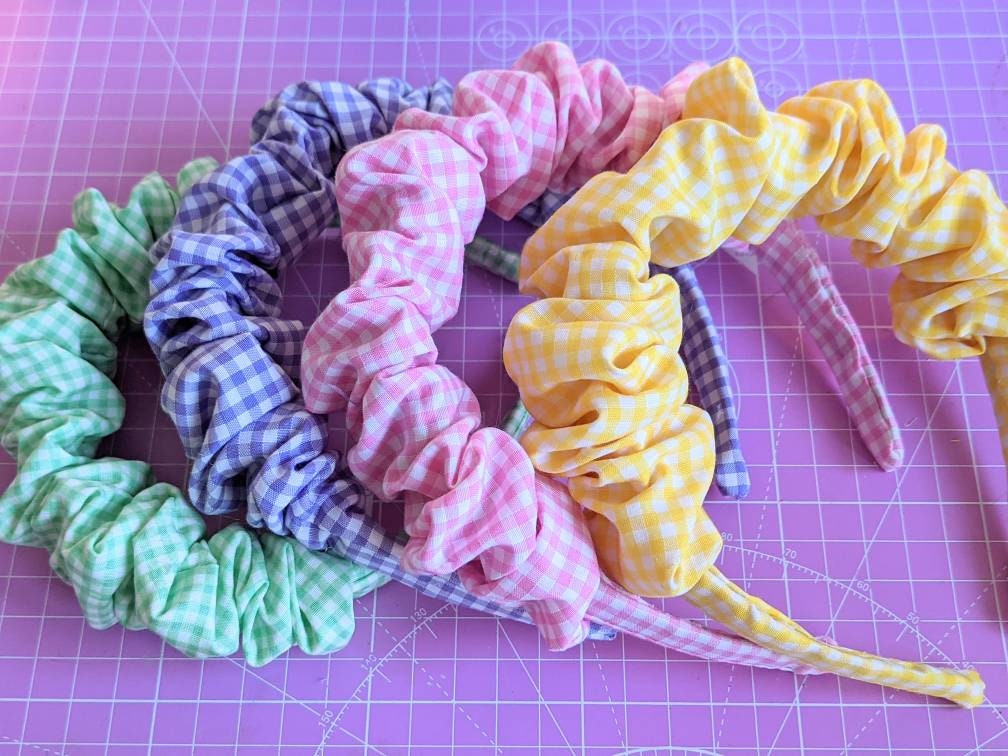 These remind me of Spring days on the hub grass! Brighten up any outfit with these gingham cotton scrunchie style hairband. A soft and flexible hairband in a choice cute colours. Suitable for kids and adults.