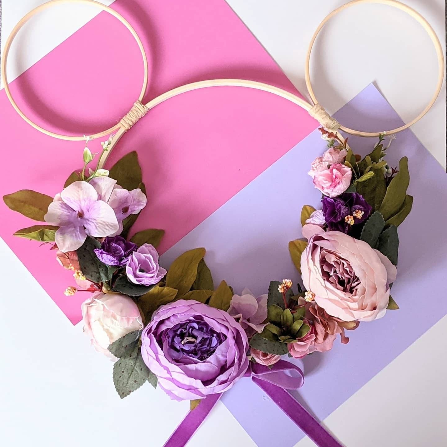 Add a touch of magic to your home with my handmade Mickey shaped indoor wreath or wall hanging inspired by your favourite ice queen. These unique pieces of home décor are made with beautiful artificial flowers (picture is for illustrative purposes and flower placement will be similar but not exactly the same). Various sizes are available. Feel free to message me to discuss custom options.