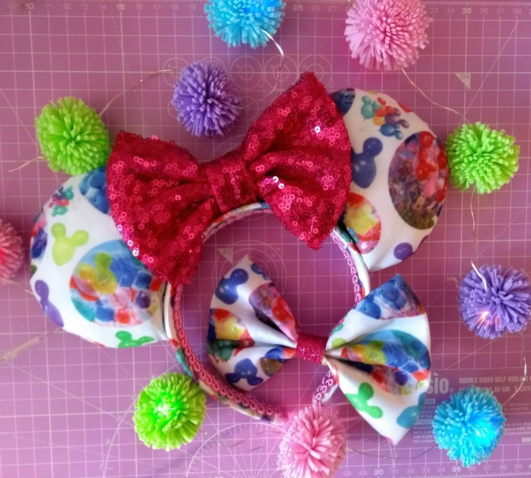 Handmade in Scotland with love, care and a little pixie dust. These ears are made printed fabric on both sides and have a sequin bow. Please leave a note at checkout with what colour bow you would like.