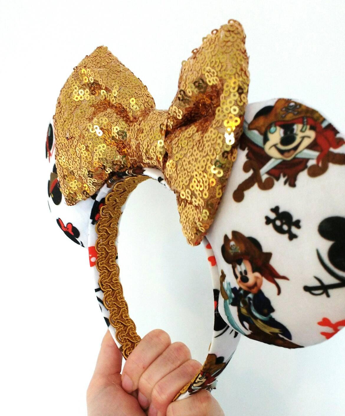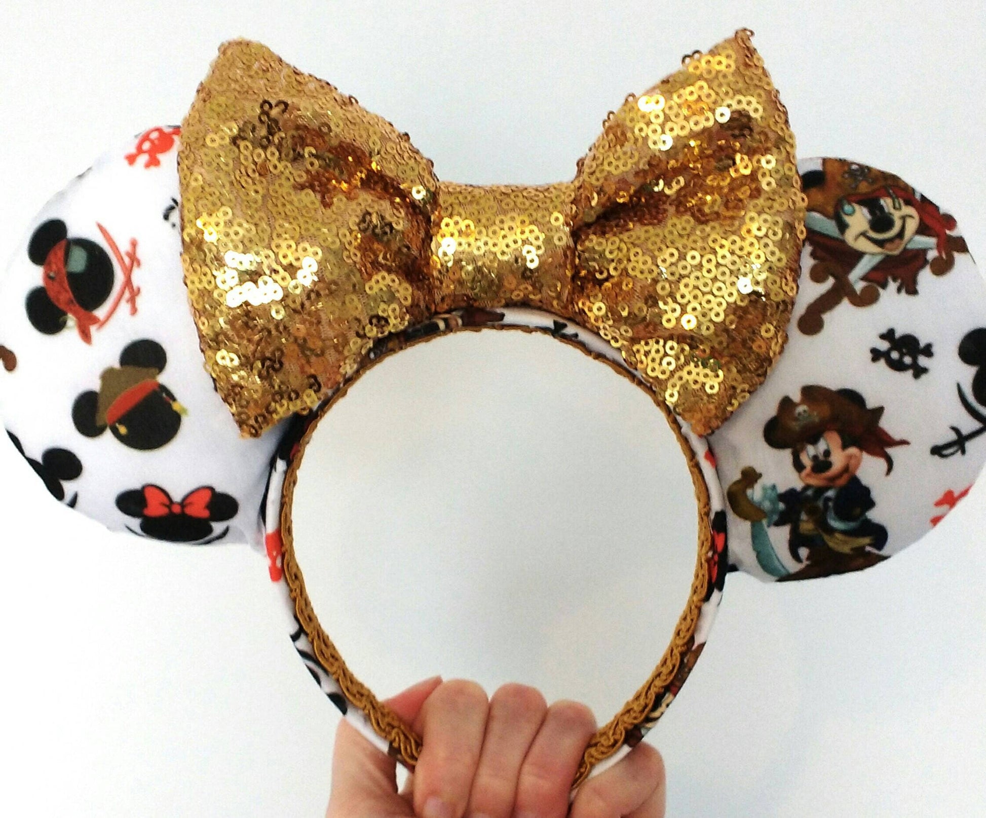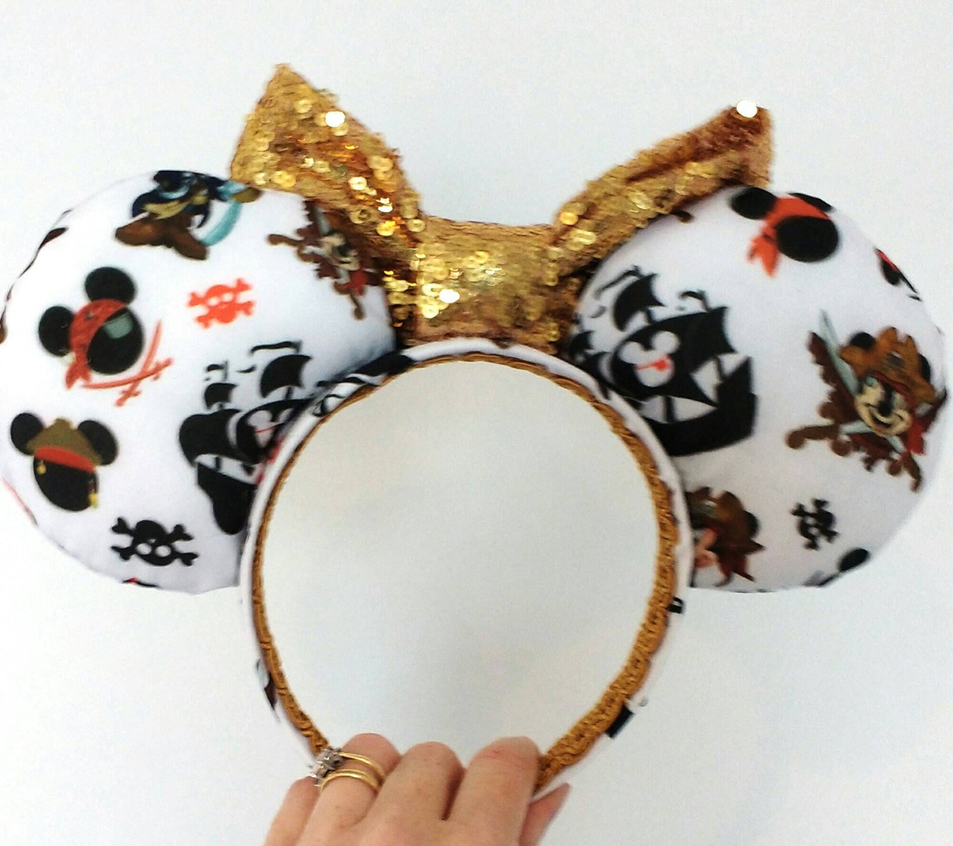 Perfect if you love a certain pirate themed ride....! Gorgeous handmade mouse ears made with the cutest pirate Mickey fabric! I have a variety of bows available - please send me a message if there's a particular colour you would like.