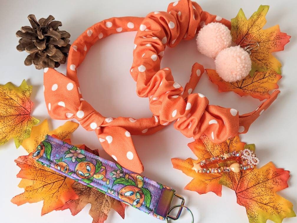 Perfect for any autumn outfit - or maybe you just love orange like I do! These lovely polka dot hairbands can be made in a scrunchie style or a knotband. The hairband is soft and flexible and suitable for kids and adults.