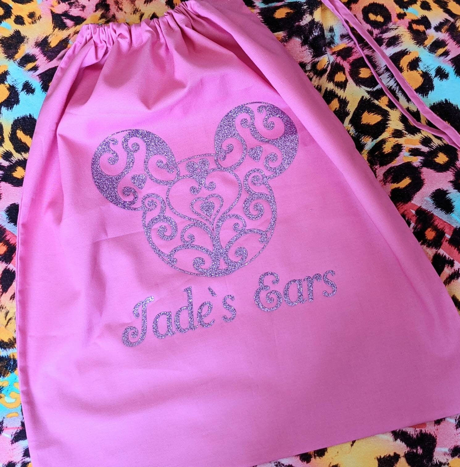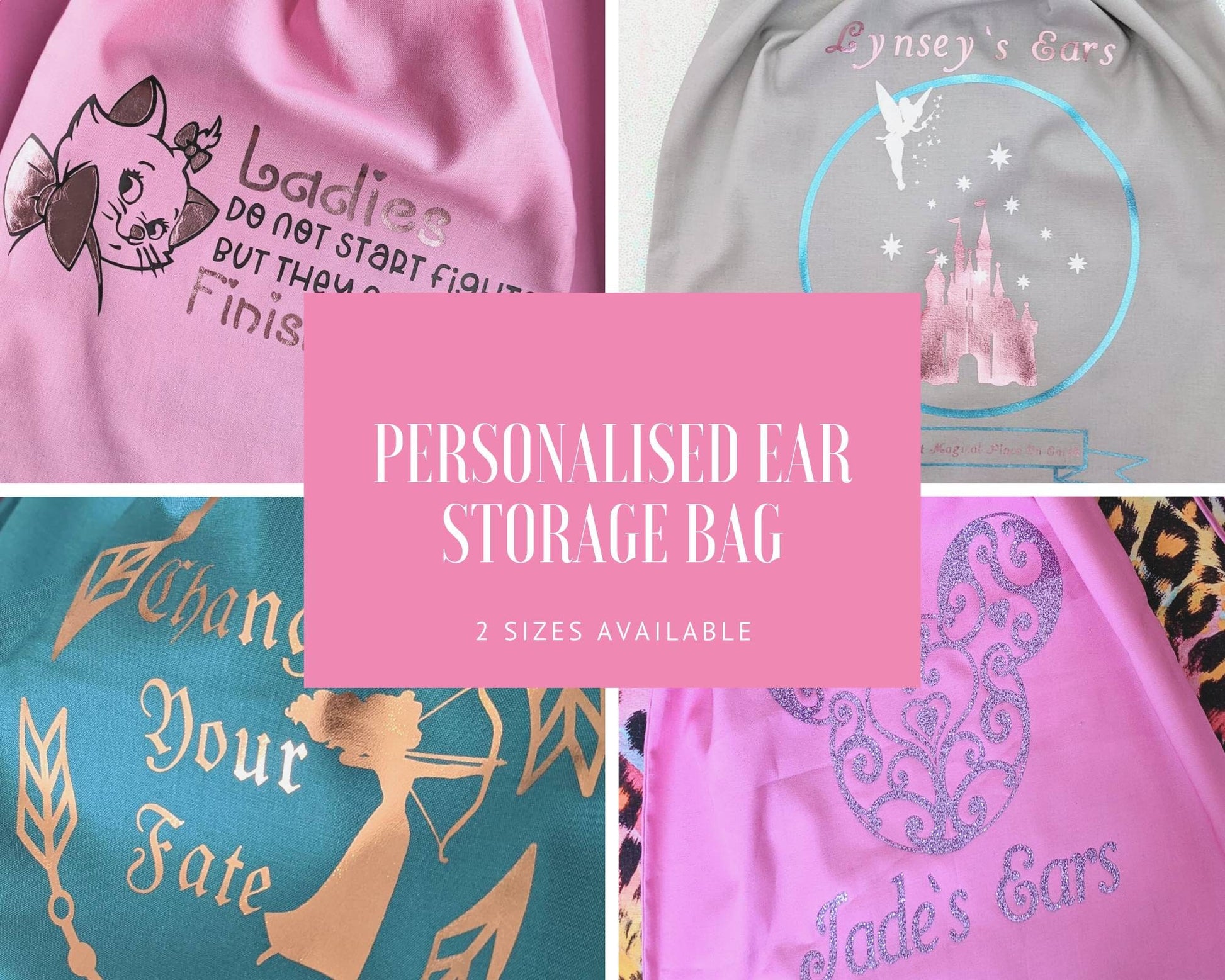 Fully personalised Mouse Ear Storage Bags for travel or for keeping your ears safe and free from dust at home.