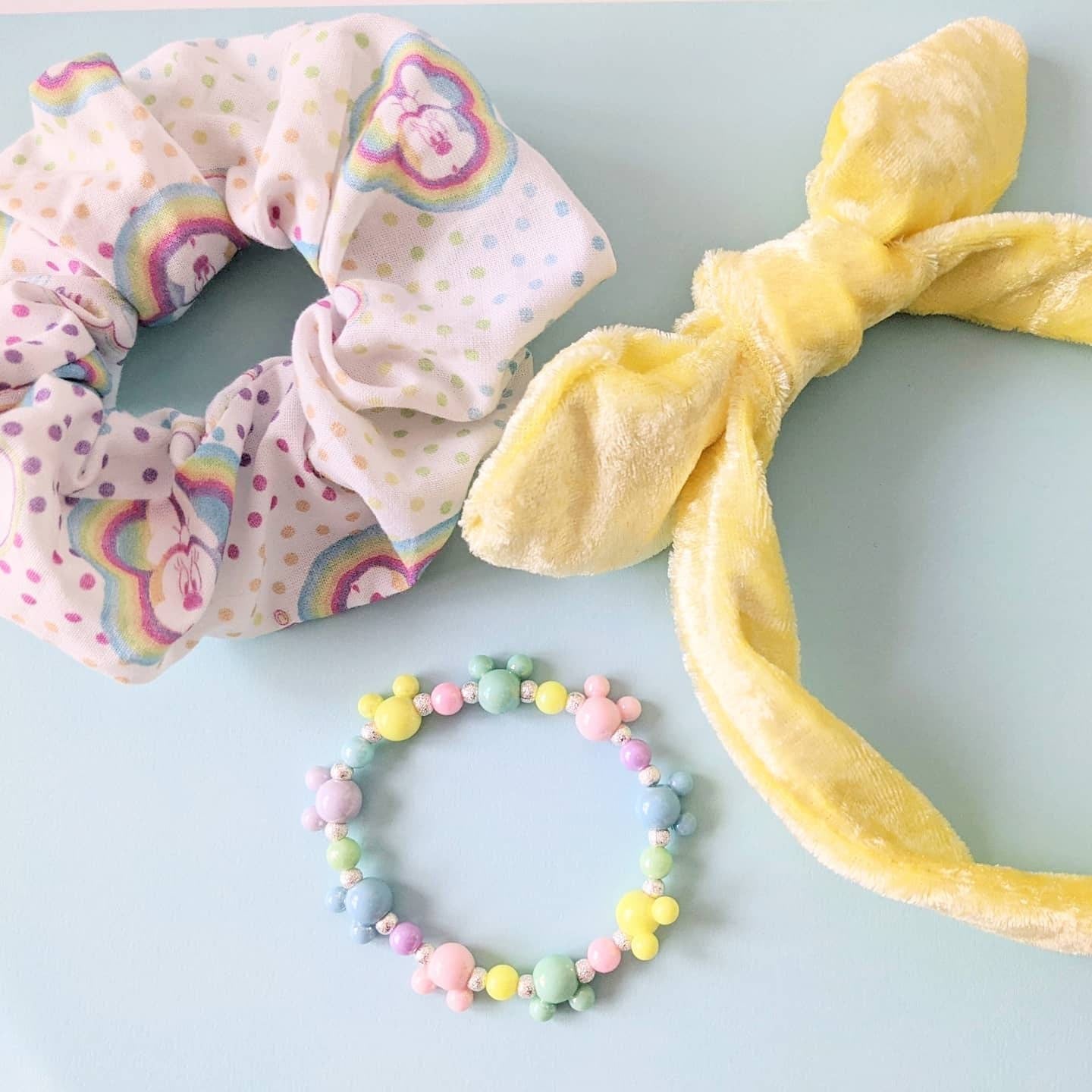 Brighten up any outfit with the ultimate hair accessory that we all knew would make a comeback! 100% cotton fabricu featuring my favourite mouse in rainbow colours!