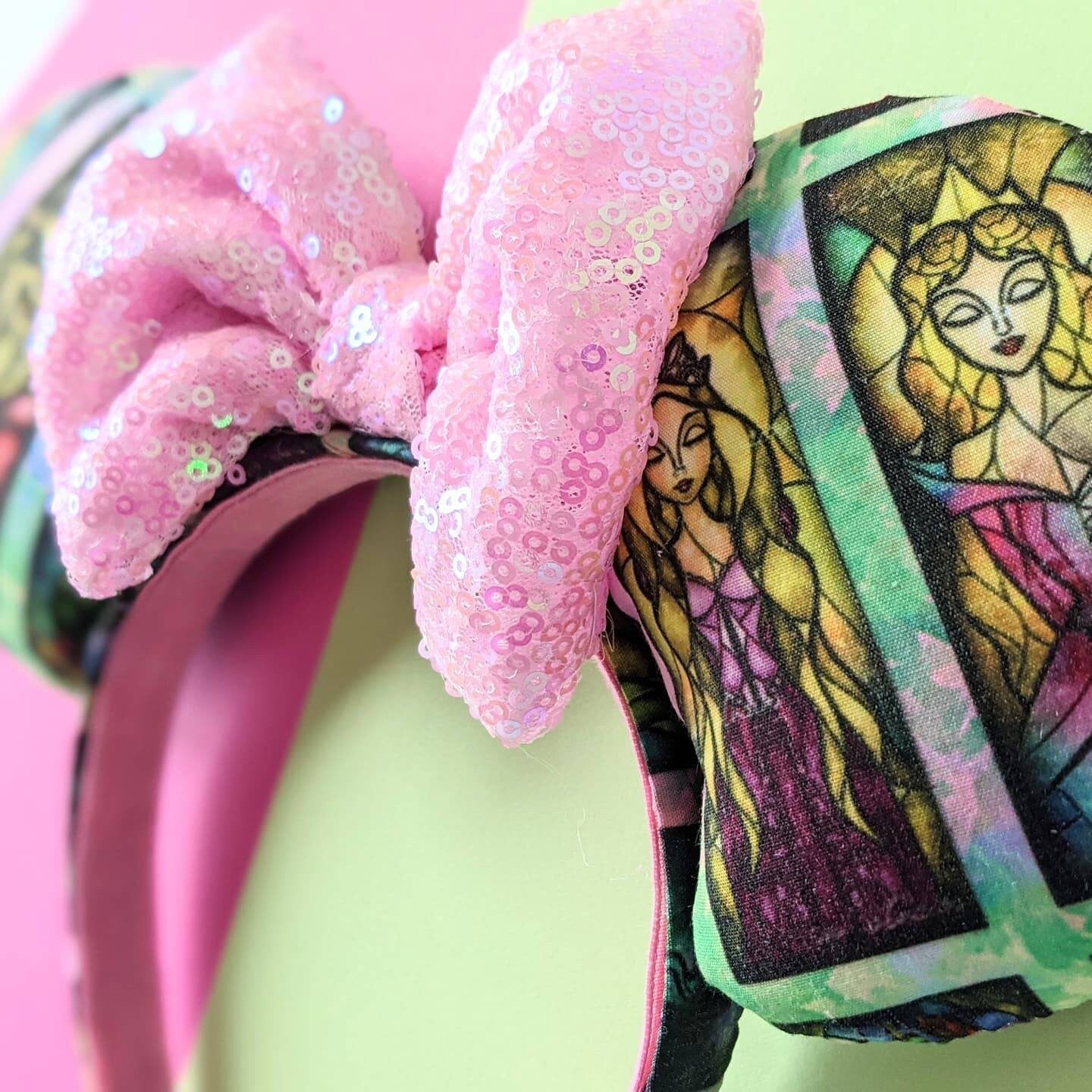 Gorgeous handmade Minnie Mouse ears with beautifully illustrated characters - there are lots to choose from so send me a wee message and I can show you the full fabric.