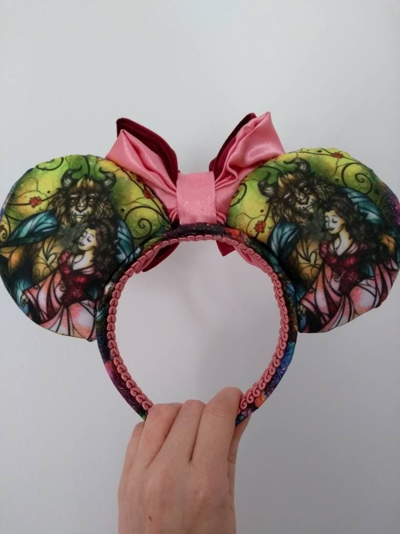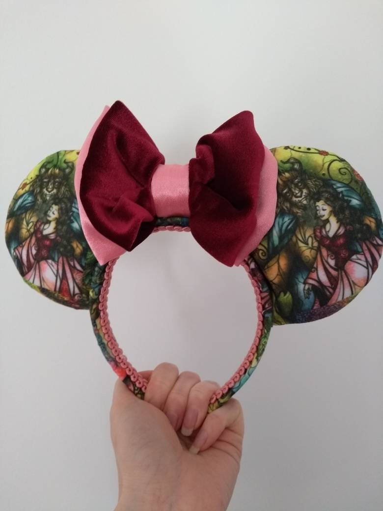 Gorgeous handmade Minnie Mouse ears made with the cutest stained glass style fabric!