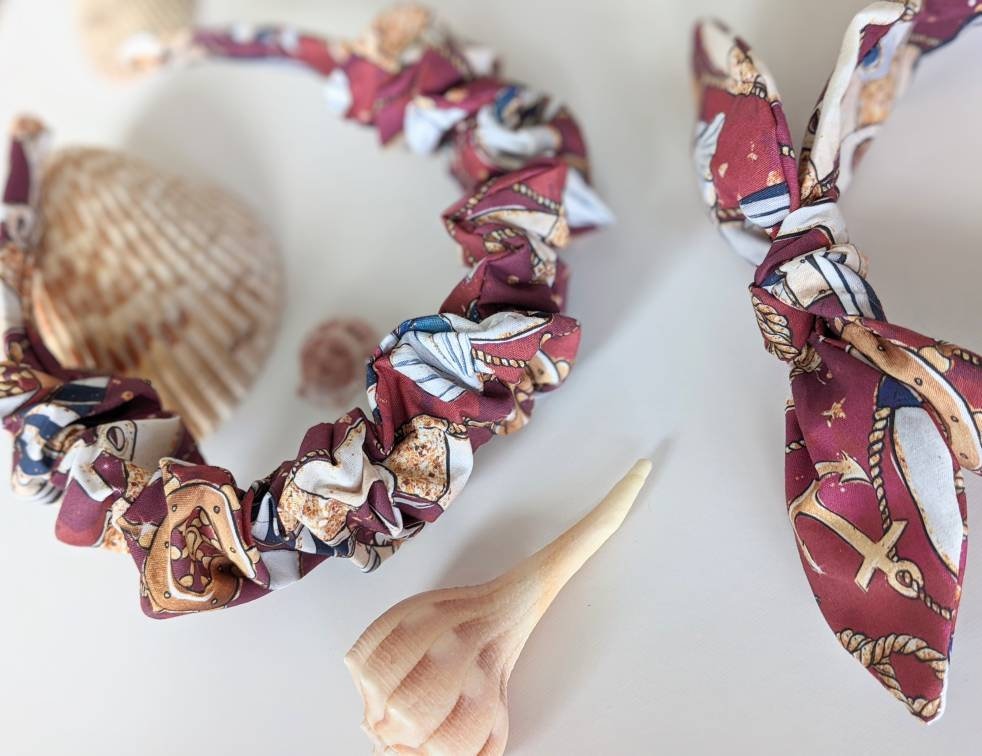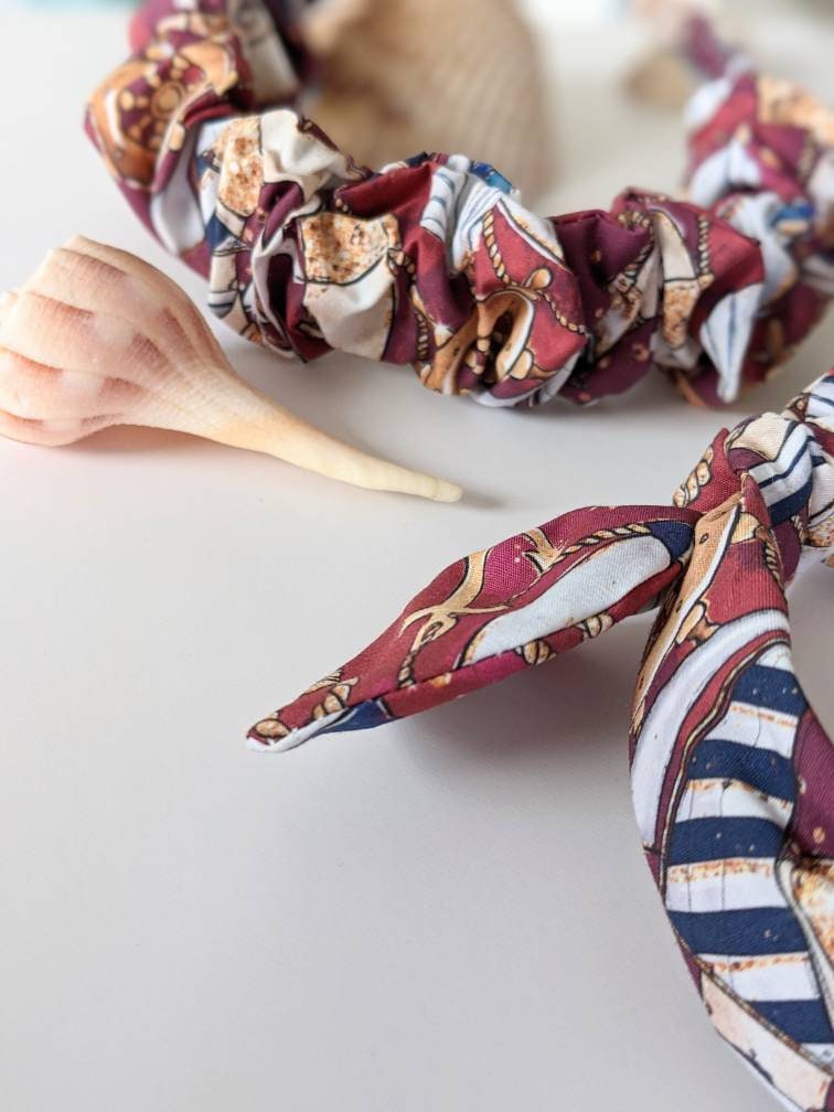 Patterned cotton scruchie or Knotband style hairband. A soft and flexible hairband in a suitable for kids and adults.